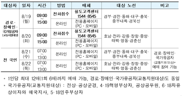 - 알림 설정 : 레츠코레일 앱을 다운로드하여 알림을 설정하면 예매 오픈 시간에 맞춰 알림을 받을 수 있습니다.