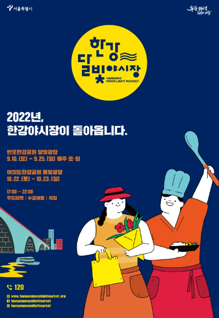2022년 한강 달빛 야시장에서는 푸드트럭 39팀과 일반 상인 60팀이 함께한다.
