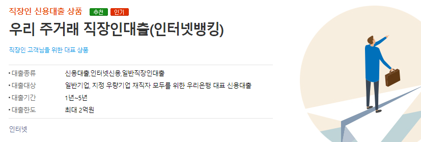 - 급여소득자(직장인) 고객을 위한 우리은행 대표 신용대출