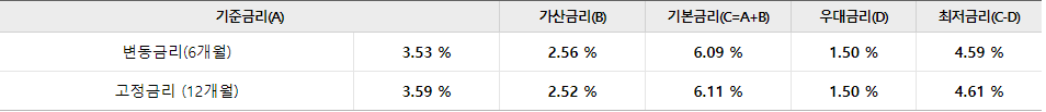 - 연체이자율 : 적용금리 + 연 3%(최고 연 12%)