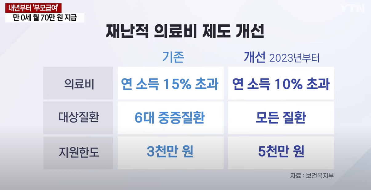 소득으로 감당하기 어려운 질환에 걸렸을 때 받을 수 있는 재난적 의료비는 지급 기준은 완화되고 금액은 최대 5천만 원까지로 확대됩니다.