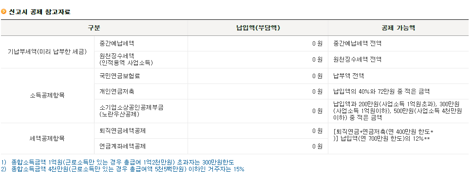 또한 과세 대상 소득을 줄일 수 있는 다양한 공제, 면제 및 세액 공제가 있습니다.