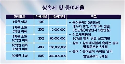 • 증여세율은 증여가액에 따라 다르며, 증여가액이 적을수록 적용세율이 낮습니다.