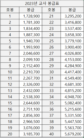 2023년 교사 봉급인상 얼마나 올랐나..(2023년 교사 봉급표)