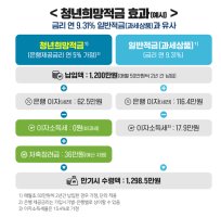연 9.31%의 적금에 가입한 효과를 내도록 하는 최대 2년 만기의 적금상품입니다. 청년희망적금에 대해 정리해보려고 합니다. 그리고 10년 만기가 아닌 5년 기간으로 축소되어 다소 변화가 있습니다. 10년 만기가 되었을 때 1억 원의 목돈을 마련해 주는 장기 프로젝트였습니다.