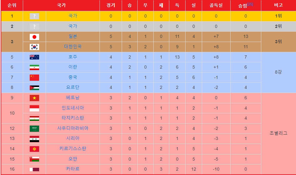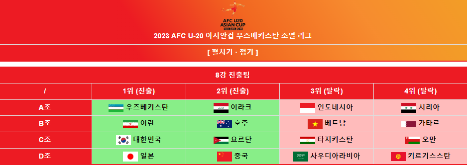 2. 2023 AFC U20 아시안컵 최종순위