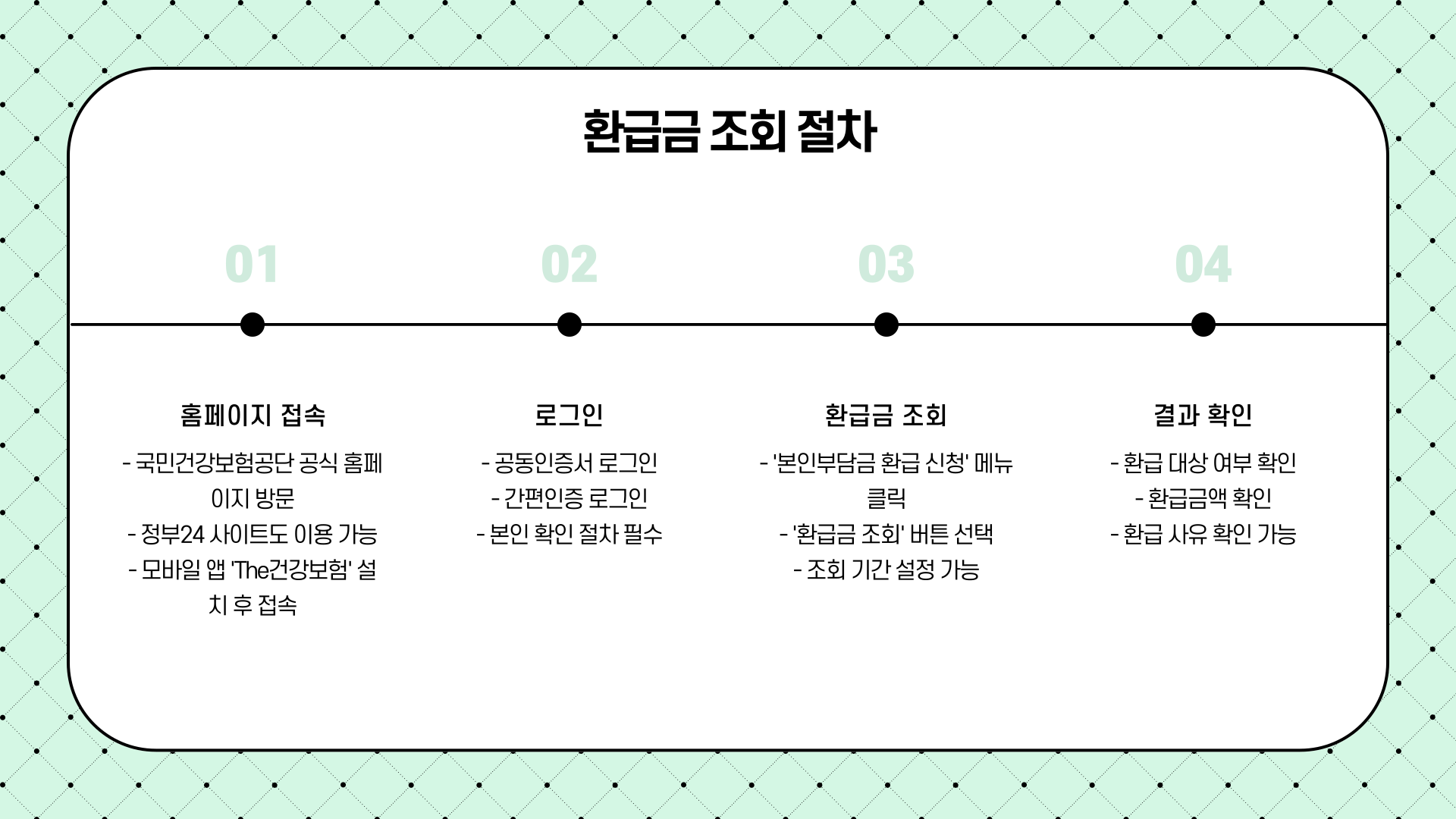 국민건강보험공단 홈페이지 또는 정부24에서 본인의 환급 대상 여부를 쉽게 조회할 수 있습니다.