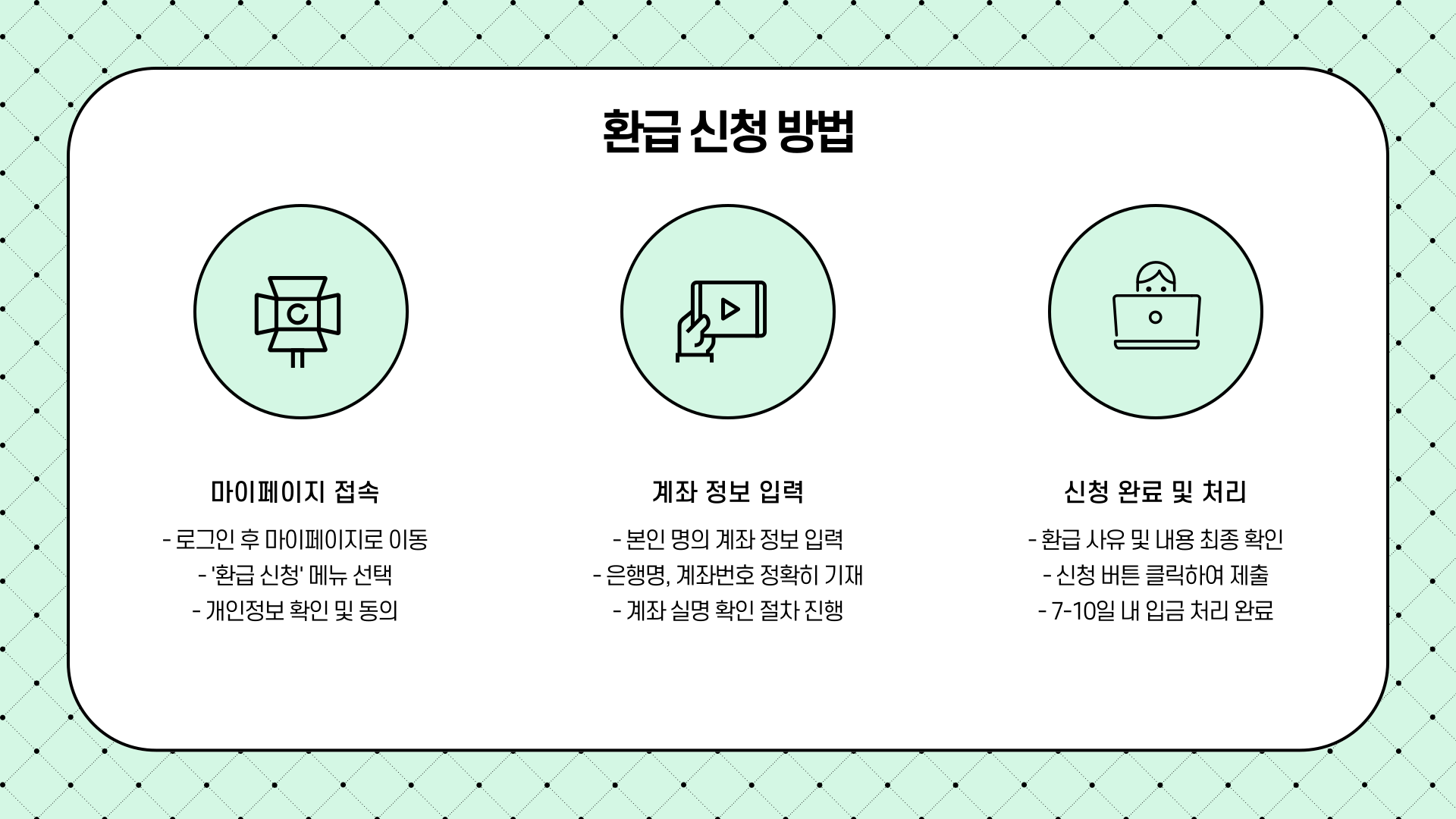 - [마이페이지] → [환급 신청] 메뉴 이동