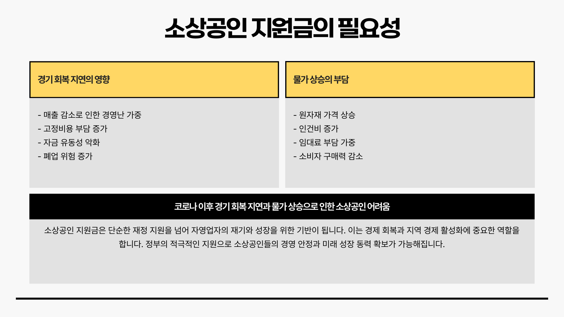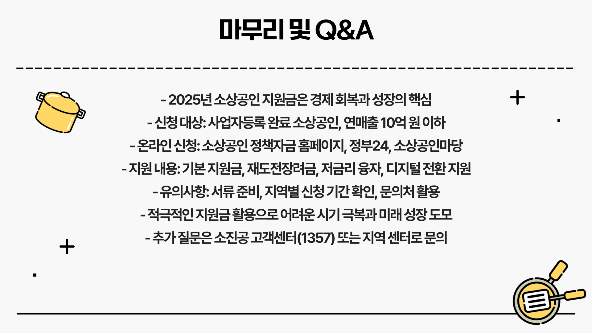 2025년 소상공인 지원금은 단순한 재정 지원을 넘어, 자영업자의 재기와 성장을 위한 기반이 되고 있습니다. 정부 지원금을 적극 활용하셔서 어려운 시기를 잘 이겨내시길 바랍니다.