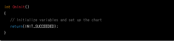 5. OnInit 함수를 생성합니다. 이 기능은 EA가 차트에 첨부될 때 한 번 실행됩니다.